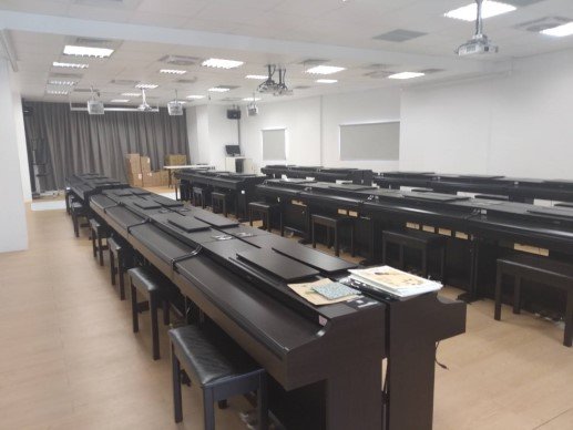 1.鍵盤教室:位於本校第W棟建築物,9樓W0912教室,鍵盤教室是讓有修鍵盤樂的每位同學都有一台鋼琴做練習,老師於前面帶領同學練習,全班同學跟著樂譜一起學習。