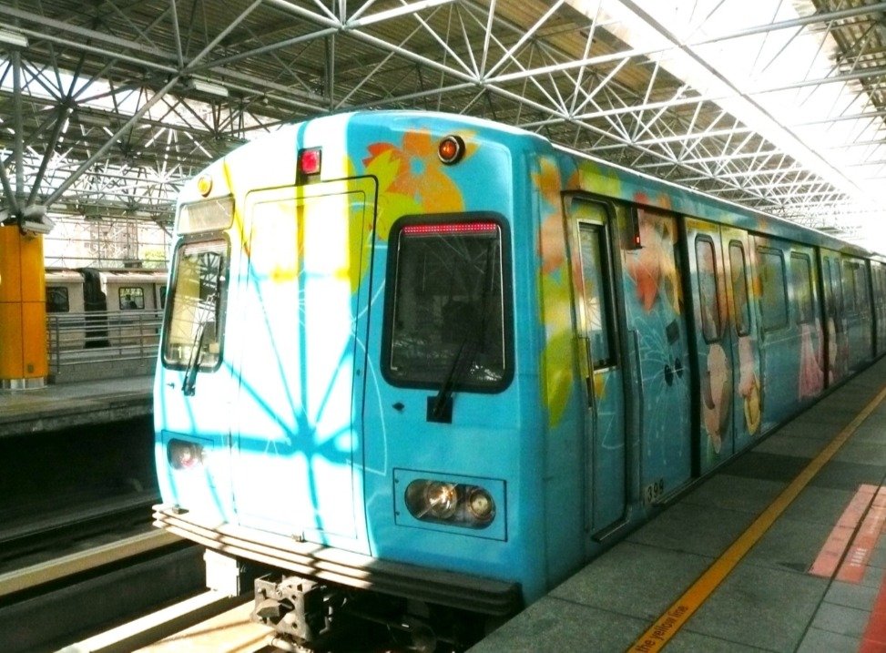 這個車廂是一輛有彩繪的捷運列車,每一節車廂都有著他自己不同的主題,最特別的是有全台灣唯一的溫泉主題車廂,台北市府在捷運車廂上也用心打造設計過,貼上了木造紋路的壁紙與木造水桶的意象,別與一般冷冰冰的捷運車廂,給人相當溫暖新穎的意象,呼應北投溫泉。