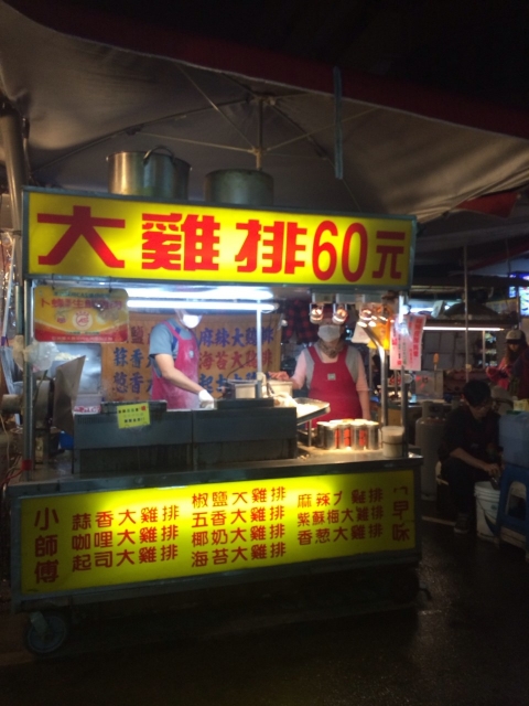 位於饒河街前隊的大雞排已開業幾十年,其口味為台式雞排,並可選擇各式的調味粉。