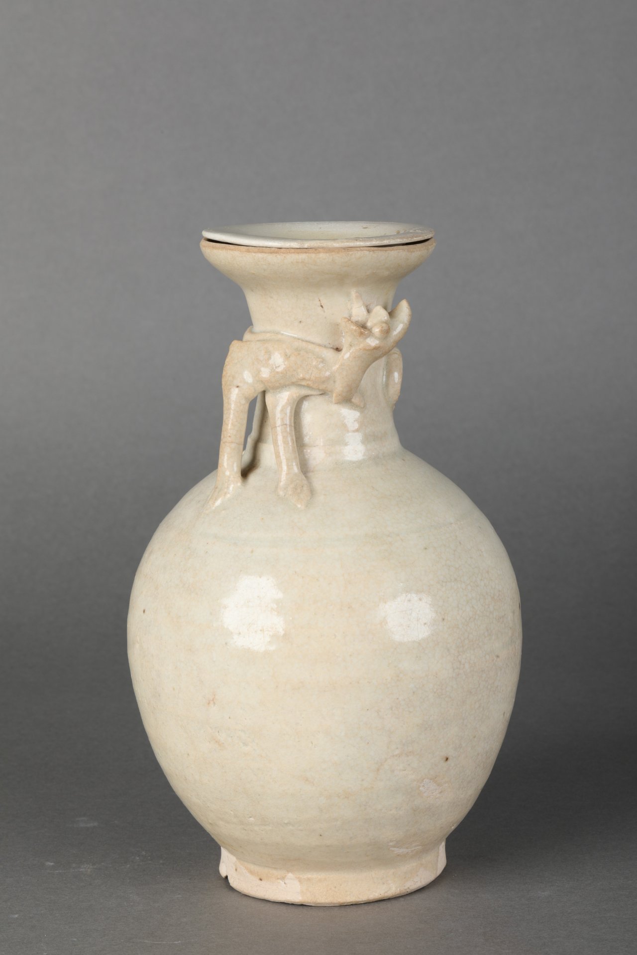 隋代瓷器,壺一般分為帶流與無流兩種,帶流者為雞首壺,無流為盤口壺。盤口壺的基本特徵為盤口、有頸、系耳都貼附肩上盤口較前代高,頸長、橢圓腹,系耳的形式多作條狀。