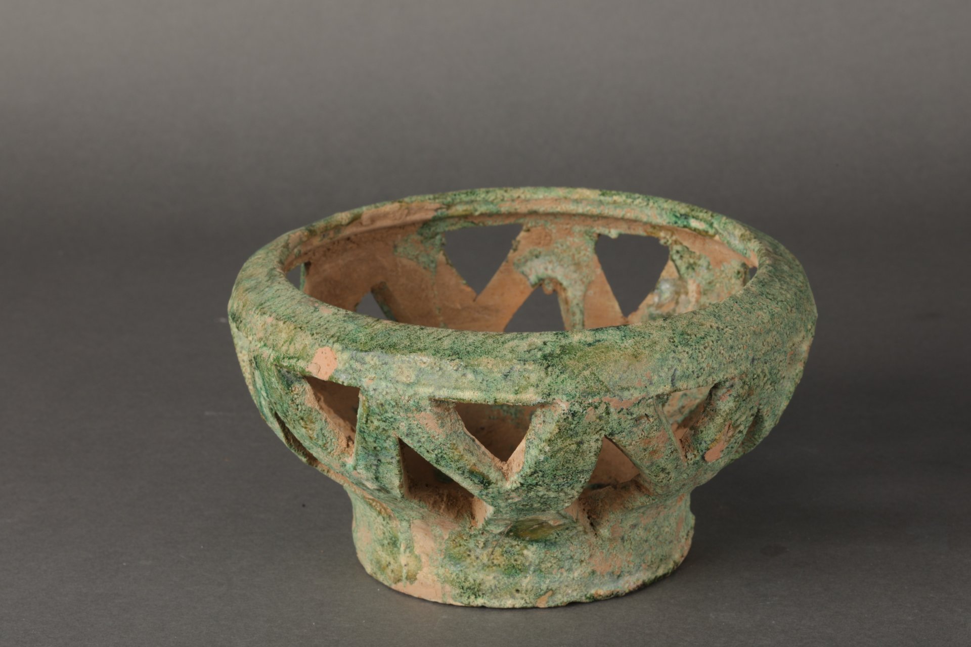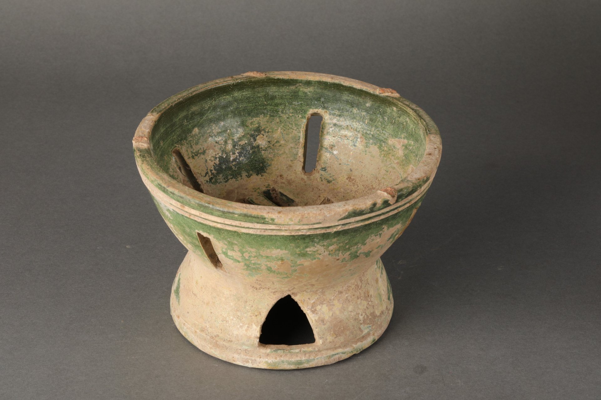 A GREEN GLAZED RED POTTERY INCENSE BURNER