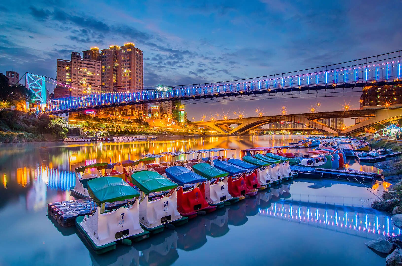 這座90幾歲的碧潭吊橋,可以乘載大約1,000人,搭起了新店溪兩岸人的連結。並且在加裝了LED燈之後,每到夜晚總是呈現出絢麗的風景,配上河畔中的倒影,更是增添了碧潭無限的月色風情。就像是橫跨水面的彩虹般,讓經過的民眾駐足停留,欣賞美景。