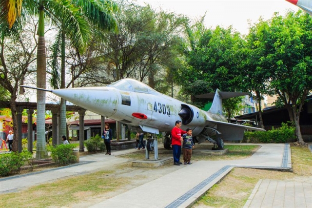 眼前這架F-104G星式戰鬥機於民國八十年三月起陸續除役,機身細長,還有T型的機翼,外型就像是飛彈一樣,可別看它這樣,它的飛行速度可達2.2馬赫,是音速的2.2倍,曾被譽為「有人飛彈」,而機身上漆的編號則是原廠序號,代表的是軍艦的身份證,可以讓人查詢一架軍機的來龍去脈。