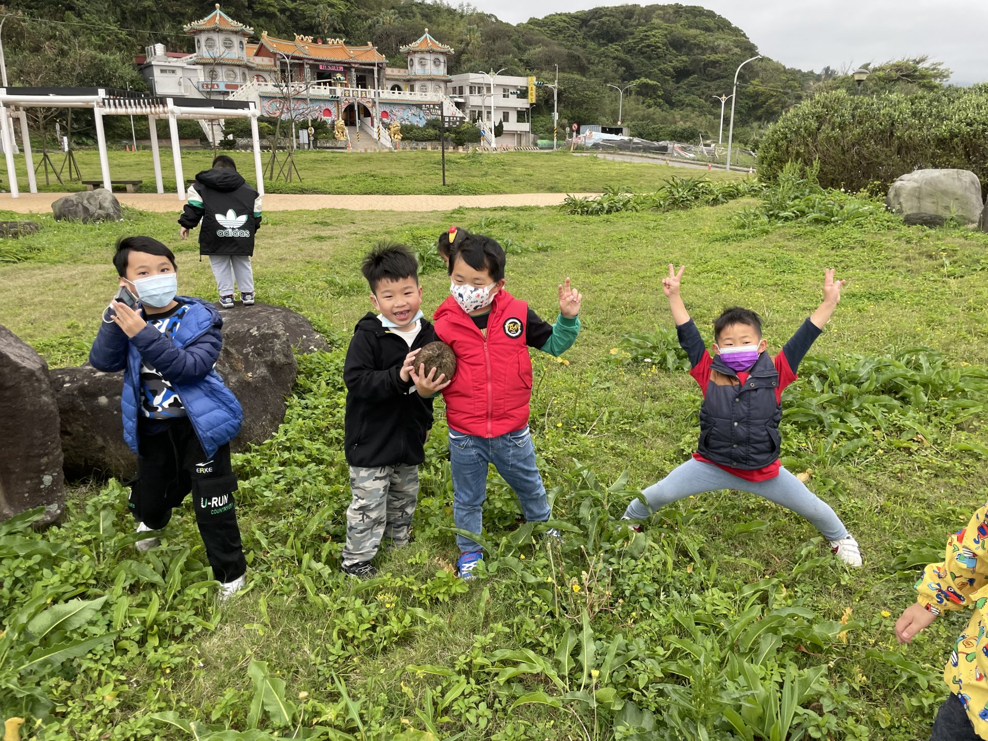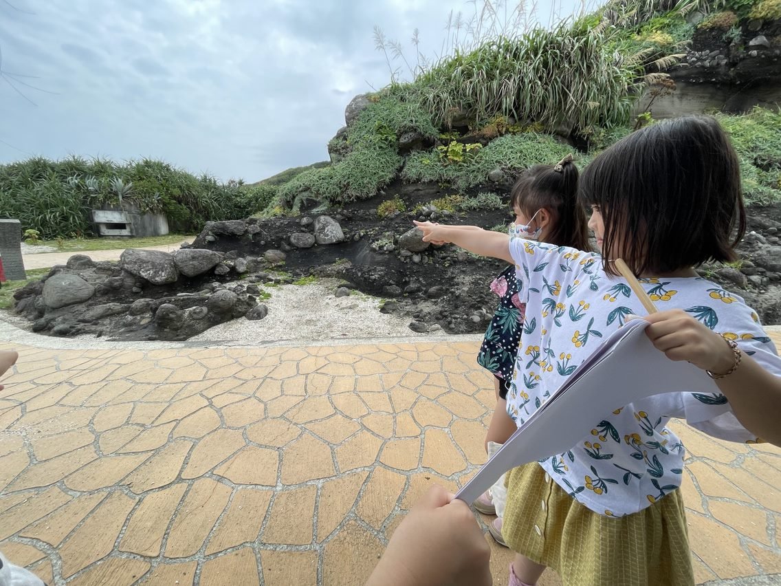 石門洞一樓可以拿玩沙工具玩貝殼砂