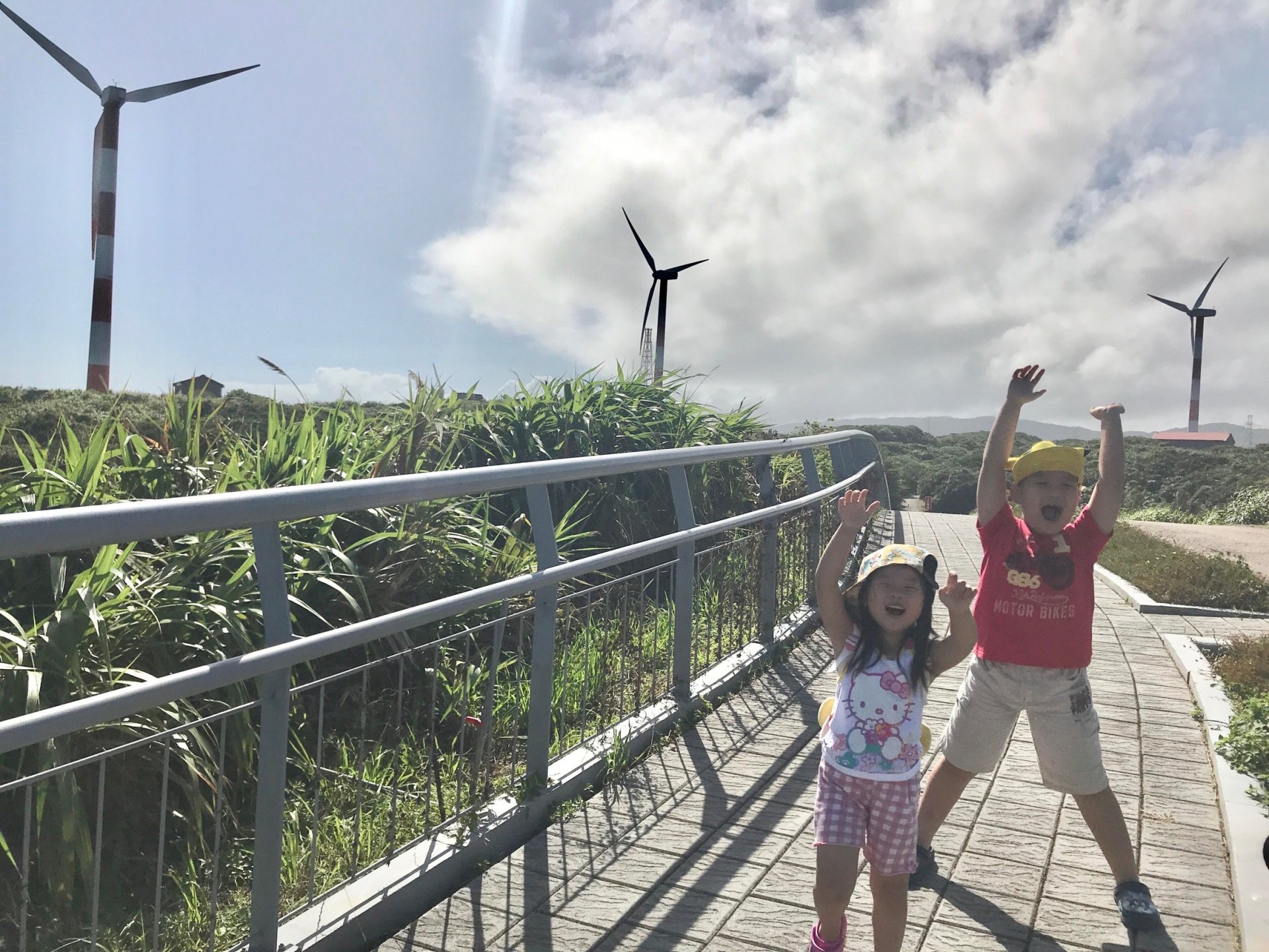 我上次跟阿嬤有看到有人像蜘蛛人在修理風車,