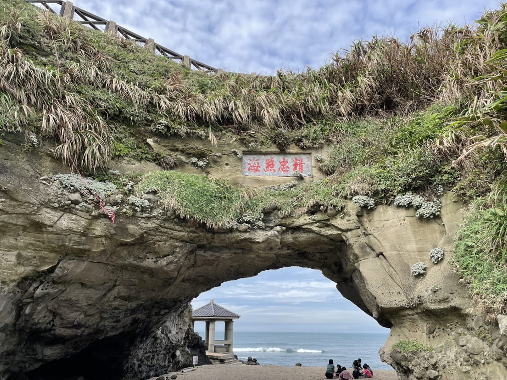 石門洞是火山爆發變成大石頭,然後水跟風一起吹就變成一個洞