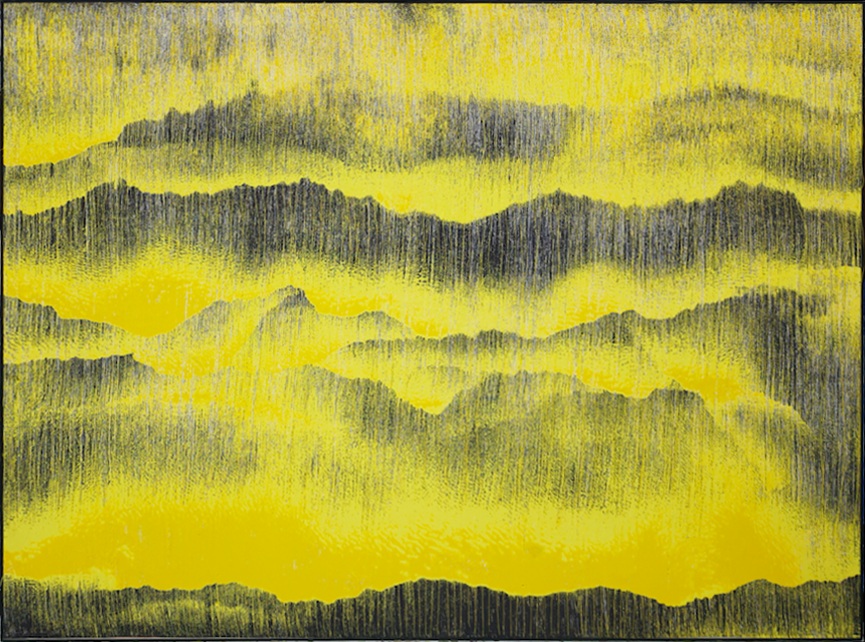 臺灣山脈》為當代藝術大師江賢二老師原作,此錶框織畫則於同年ART TAIPEI 台北國際藝術博覽會中展出。