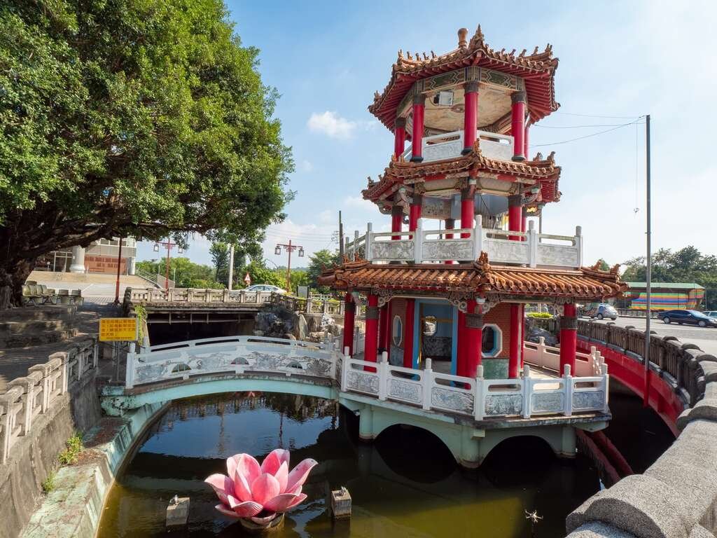 其內綠意盎然,有小橋流水、涼亭造景,從荷花鐘噴出的人工泉水,常讓遊客流連忘返。