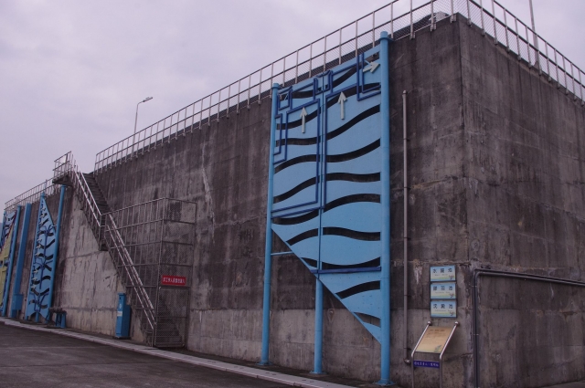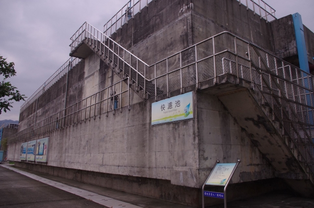 從進水到過濾需經過四個步驟,分別為水躍、膠羽、沉澱、過濾,以下將透過為您展示各設施的運作方式,觀賞完後可至各設施前將有更詳細的說明喔。"