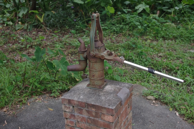 新裝設汲水幫浦時必須先挖掘一口有地下水的水井,井壁砌牢之後,以水泥封井,留一個取水孔,以鐵管伸入井底,鐵管連接水泥地面上的一座汲水幫浦,幫浦以人力上下壓提,運用空氣壓力原理將井水吸引上來,讓取水更為便利,造福無數的家庭。