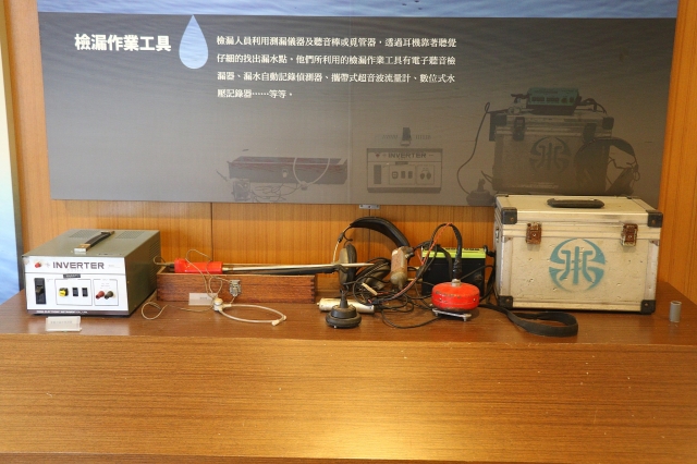 此區設有漏水地下管線,並在上方鋪上不同材質,模擬漏水的實際情況,水管醫生就是拿著儀器。我們一同來看看這地下的管線究竟長什麼樣子。