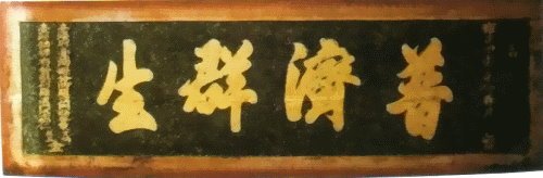 《普濟群生》:雍正甲寅年仲春月穀 (清雍正十二年 西元一七三四年) 臺灣府台灣縣分防羅漢門丞葉文炳、臺灣鎮標右營駐刮羅漢門汛千總仁林五仝立。
