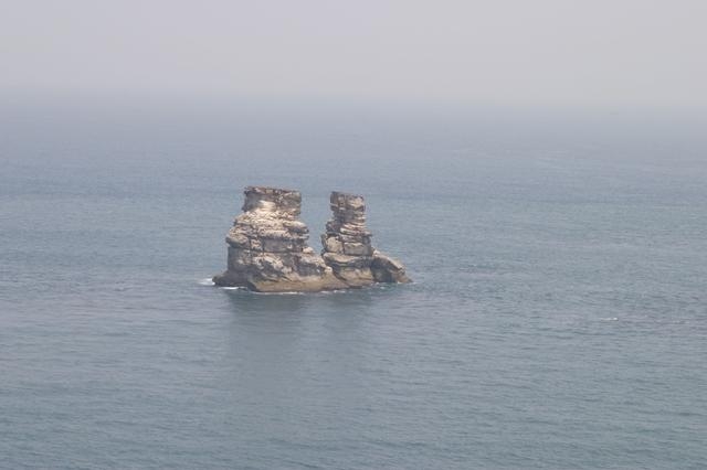蒼蒼大海上兩個屹立不搖的石柱,總是特別引人注目,這是金山鄉獨一無二的「燭台雙嶼」,數百萬年來因長時間的海浪侵蝕,獨留下堅硬的部份孤立海中,為一典型的海蝕柱地形,其外形如兩座燭臺,形影不離相互依偎,所以又稱為「夫妻石」,感情看起來可真好呢!
