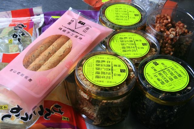 採用米果混搭麥芽糖後,再滾上各式各樣的口味, 一共有12種口味可供選擇,是金山老街現今的特色名產喔!!