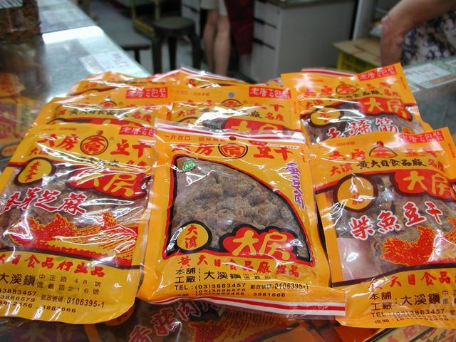 在大溪,賣豆干店比比皆是,大房豆干使用非基因改造的黃豆,遵造古法製作彈性十足、香味四溢的大溪豆干。傳承於大溪烏豆干的始祖「黃屋」,並且研發真空包裝等技術,讓大房豆干品質穩定、獲獎無數。