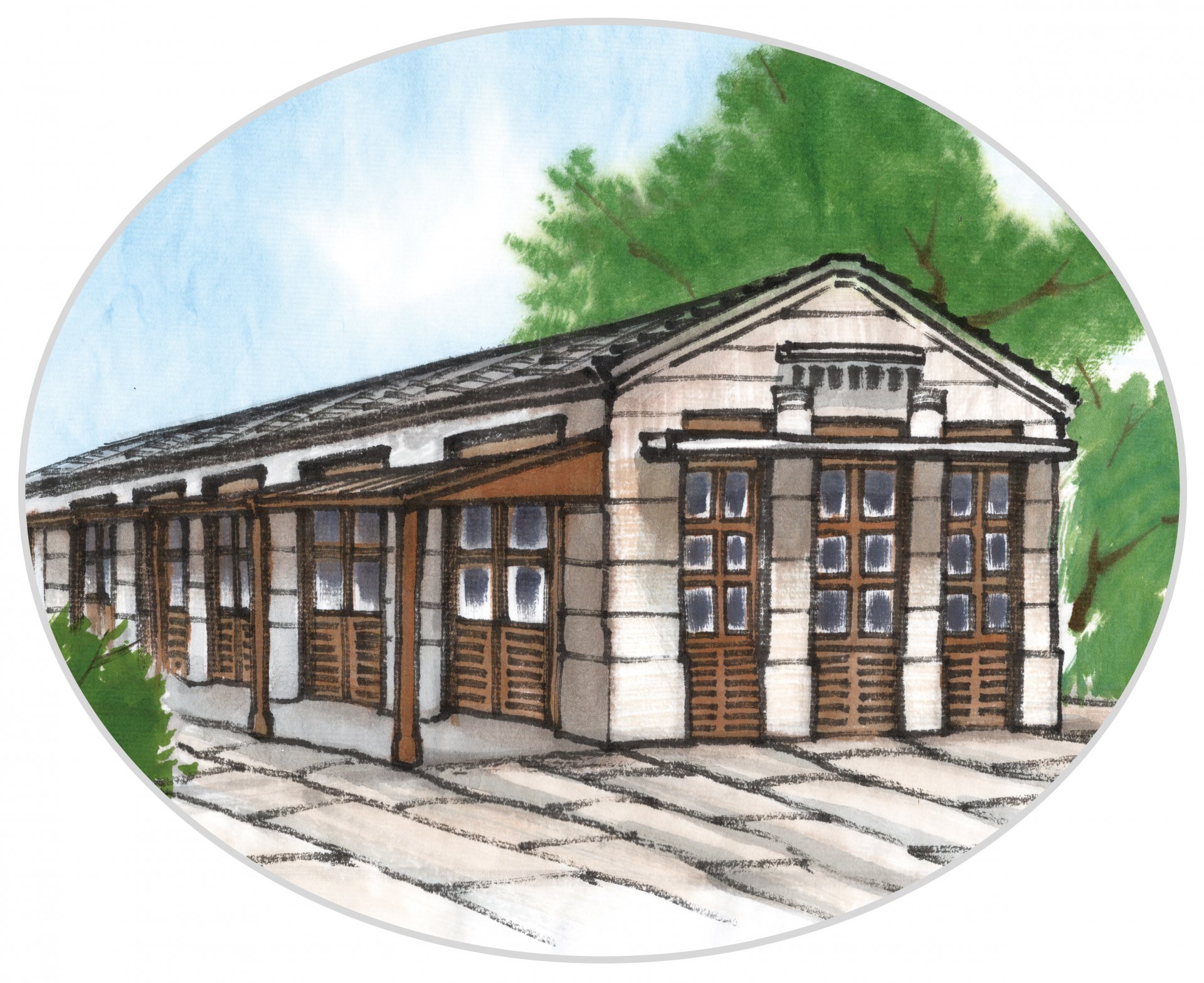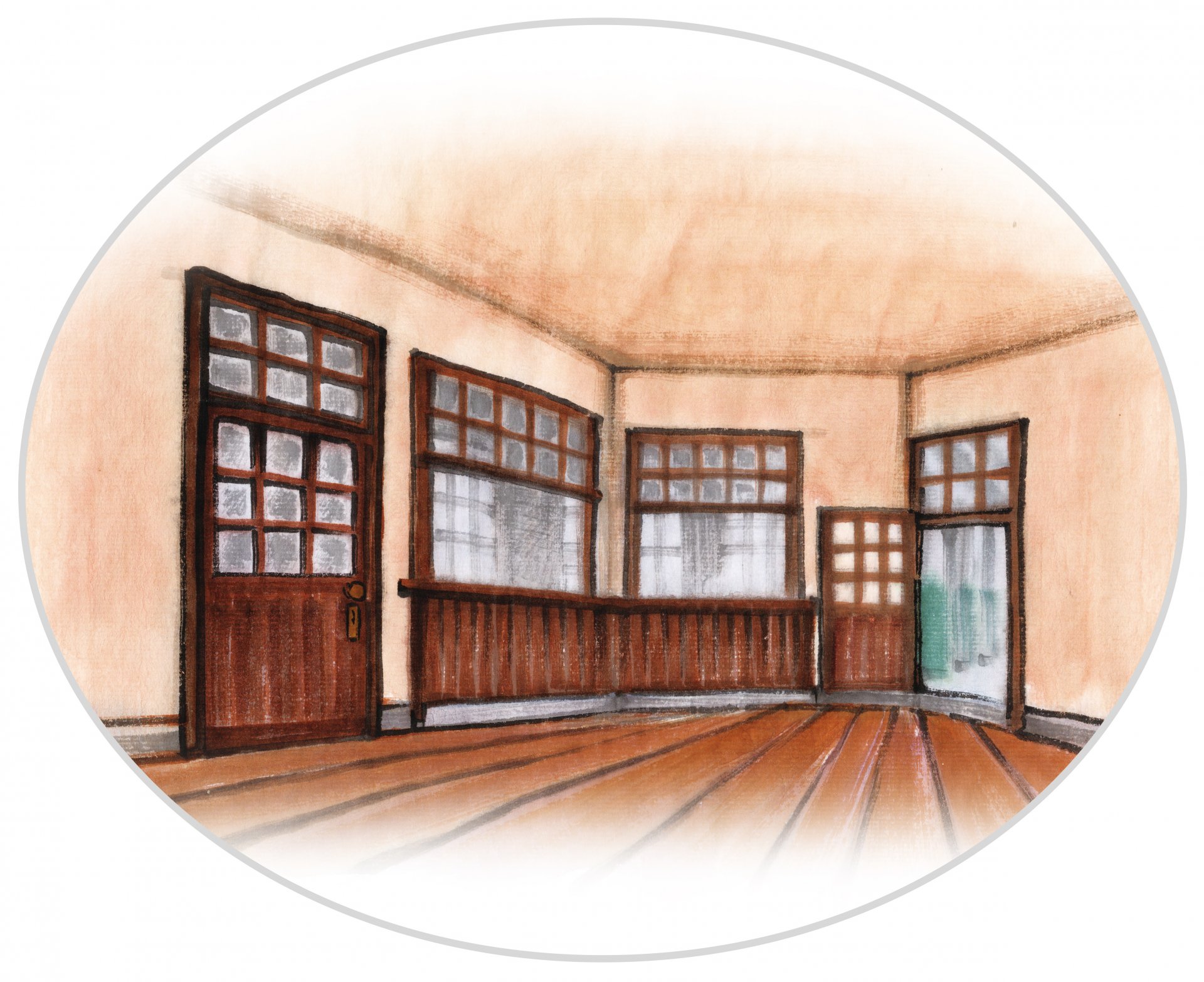 The address of the Tobacco Factory is No. 133 Guangfu South Road which was the factory’s main gate. From here, the first building we see is the office building, the construction materials are much more exquisite than those used in the factory. There is a small roundabout at the entrance which was designed to slow down the traffic. On the floor plan, the office building looks like a door shape(ㄇ). Besides, another special feature of it is that it used to be the only three-story building in the factory. There used to be a guard room on the first floor. The second floor was the office, including the office of the factory manager. This office has an open counter made of marble and wooden floor. The wooden floor would make noises when people walk on it protecting against thief. A meeting room was on the third floor.In order to differentiate from other buildings in the factory, the roof tiles are made of the green tiles which imported from Japan.
