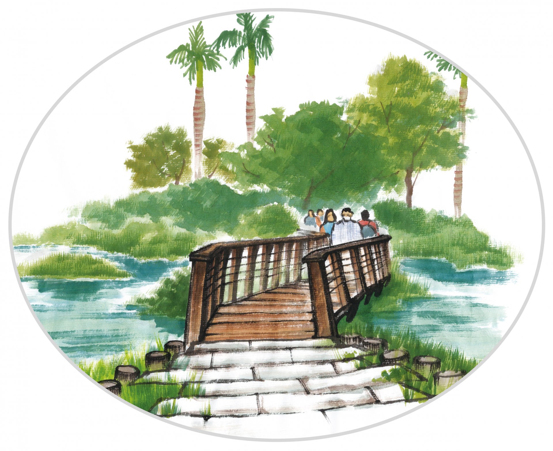 Next, let’s walk around the eco-pond, there are birds such as egrets, red-crowned swamp chickens, night herons and so on. We also can see lots of endemic species in Taiwan, for instance: the water willow on the north side. The ecology here is very rich and diverse.