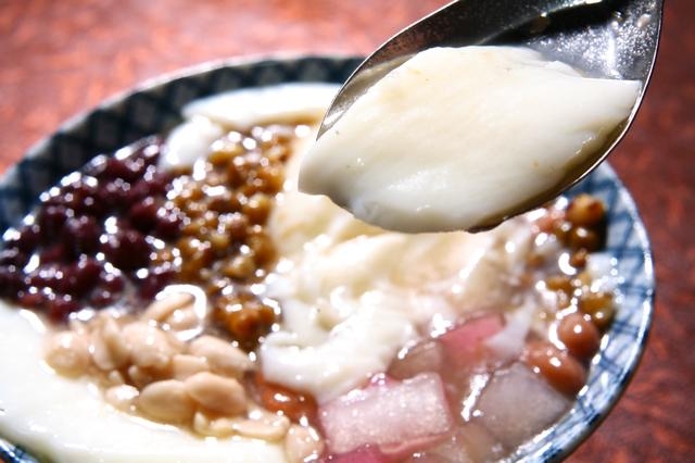 夏天,來碗冰涼的豆花消消暑,冬天,來碗熱豆花暖暖心,豆花本身即有豆香及微甜滋味,即使是單吃就相當美味,而搭上花豆、花生、紅豆、綠豆、Q圓等配料,再簡單淋上糖水,古早滋味讓人好像回到小時候吃扁擔豆花的感覺呀~