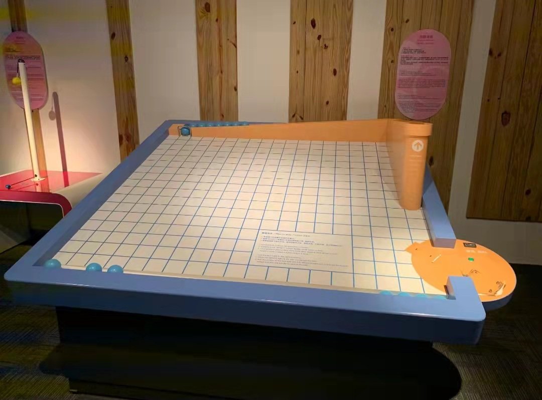 讓小球沿紅色球道落下,然後仔細觀察它能否完全穿過鐵圈中,你可試用球道下方的圓盤調校彈板的角度,再把鐵圈移動並排列一致而讓小球完全穿過嗎?打賭你不能一次就成功 。