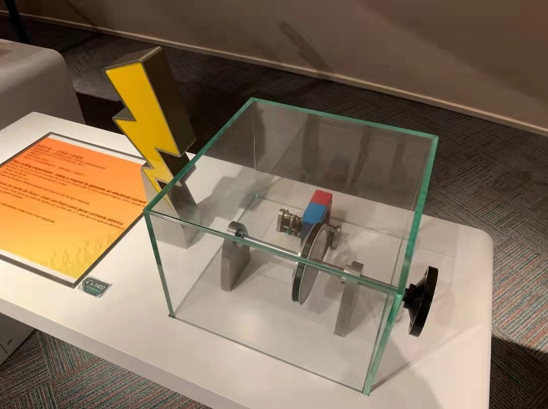 在本展品中環形軌道及線圈可以看成是屈折成圓環的線圈砲,鐵球可以在其中反覆經過同一組線圈從而獲得更大的速度。