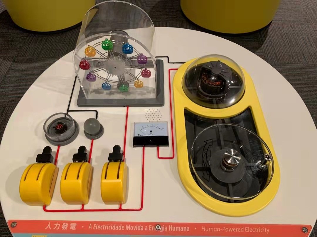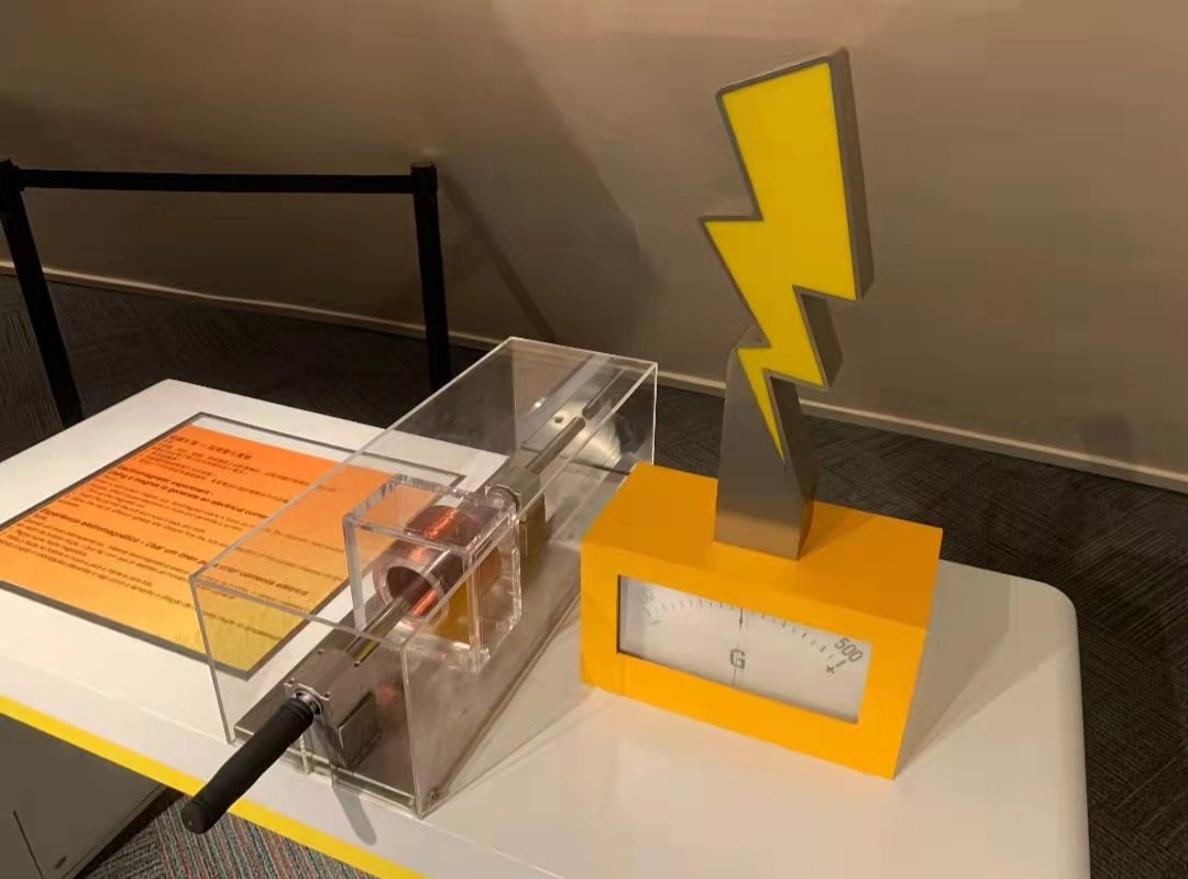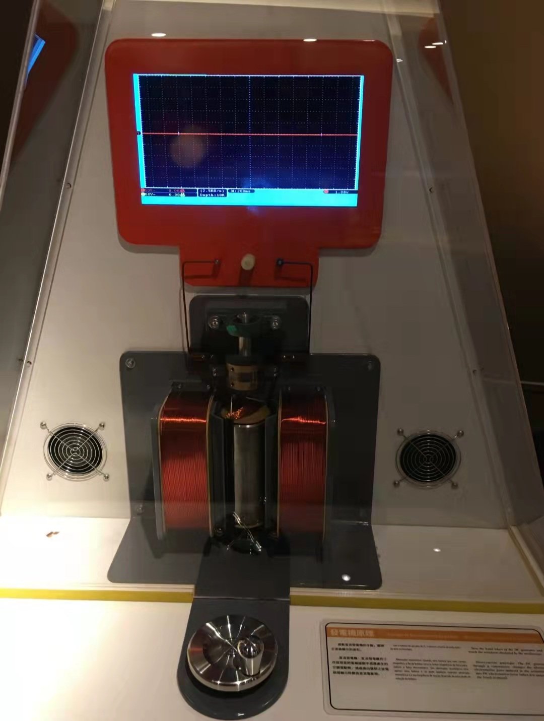 通過轉動線圈,U型磁鐵南北兩極之間的磁力線會被線圈切割,令線圈內的自由電子發生定向移動而產生電流。