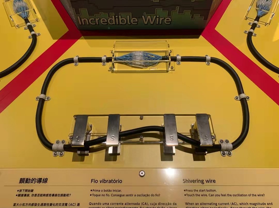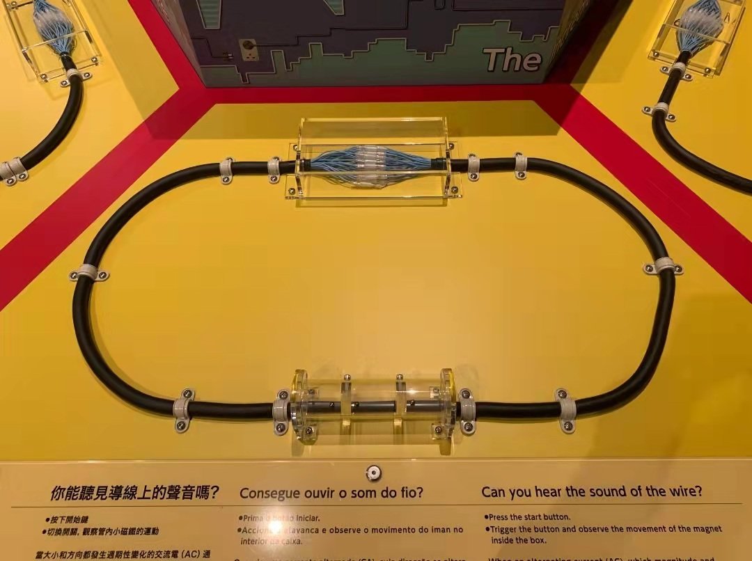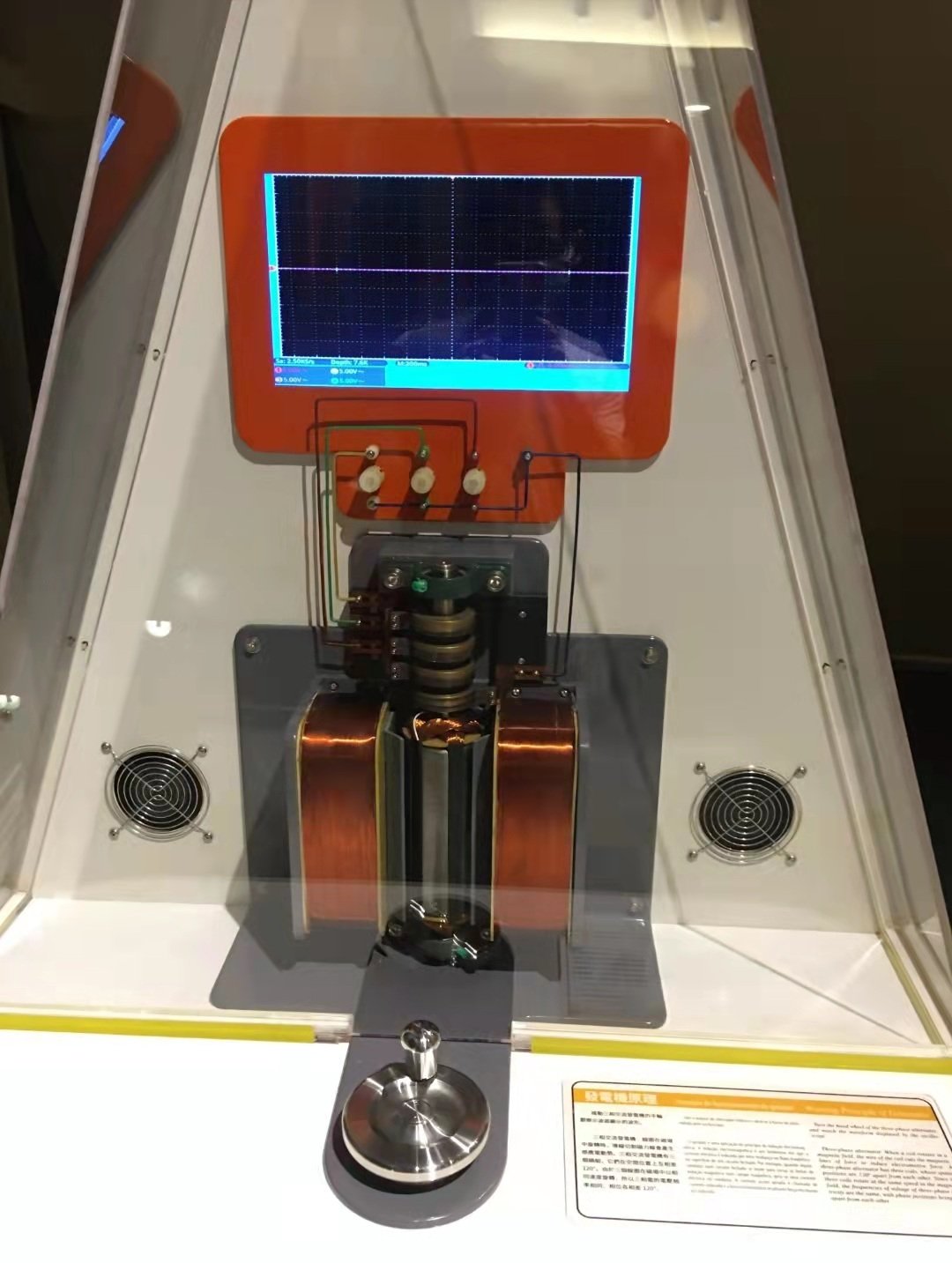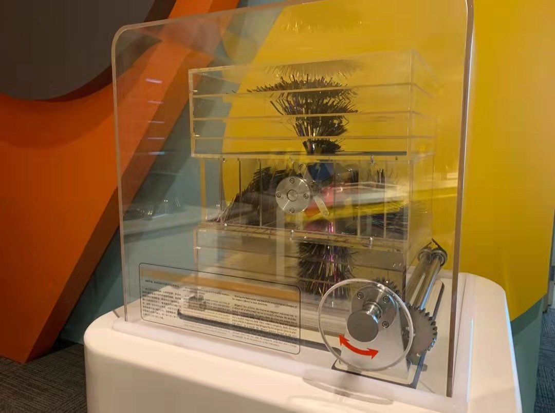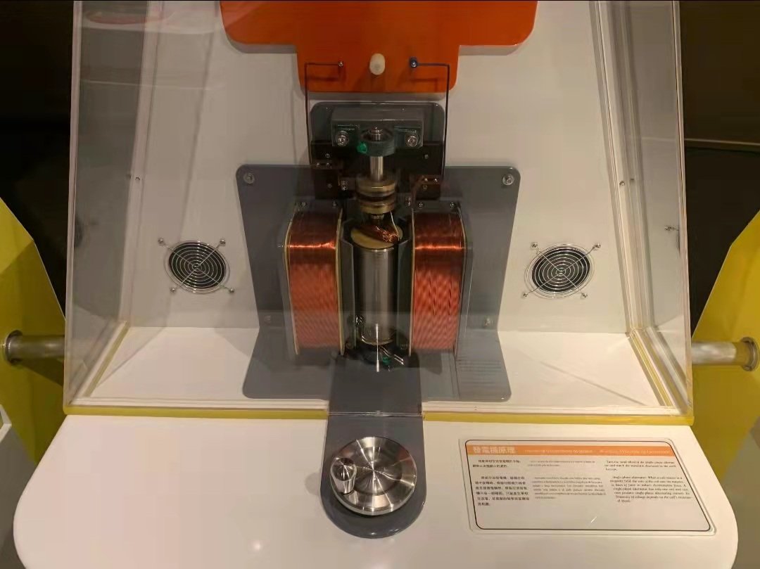 當大小和方向都發生週期性變化的交流電通過導線後,管內小磁鐵的磁場受到影響,導致小磁鐵持續跳動起來。