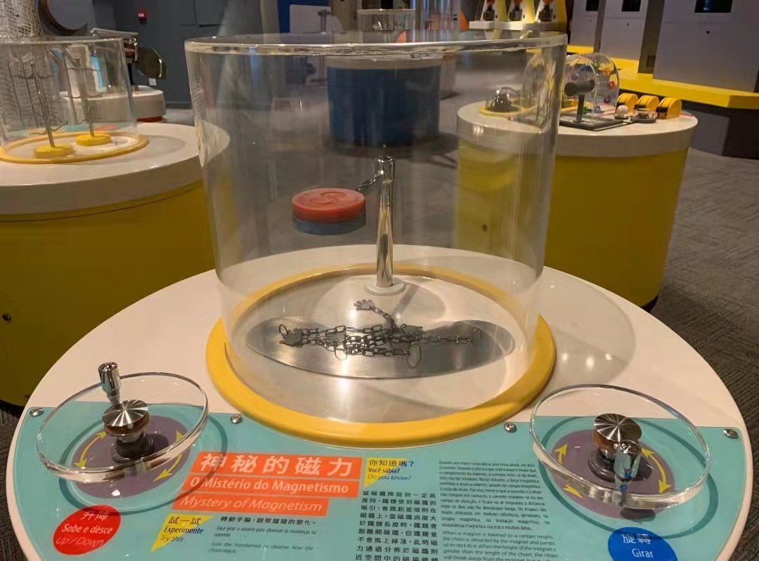 當磁鐵降低到一定高度時,鐵鏈受到磁鐵的吸引,會跳起並吸附在磁鐵上。當磁鐵高度大於鐵鏈長度時,鐵鏈會脫離開磁鐵,但鐵鏈並不會馬上掉落,此時磁力通過分佈於磁鐵附近空間中的磁場繼續起作用,所以即便鐵鏈與磁鐵完全不接觸,只要它們之間的距離不太遠,鐵鏈仍會被磁鐵吸引而站立在空中。磁鐵廣泛應用於電動機、發電機、磁懸浮、核磁共振等領域。
