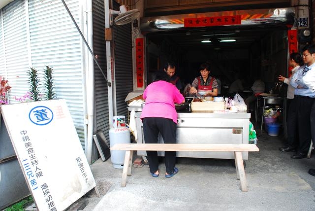 董家肉圓皮Q彈牙,沾上米白色的醬汁風味獨具,想知道當地人的吃法嗎?