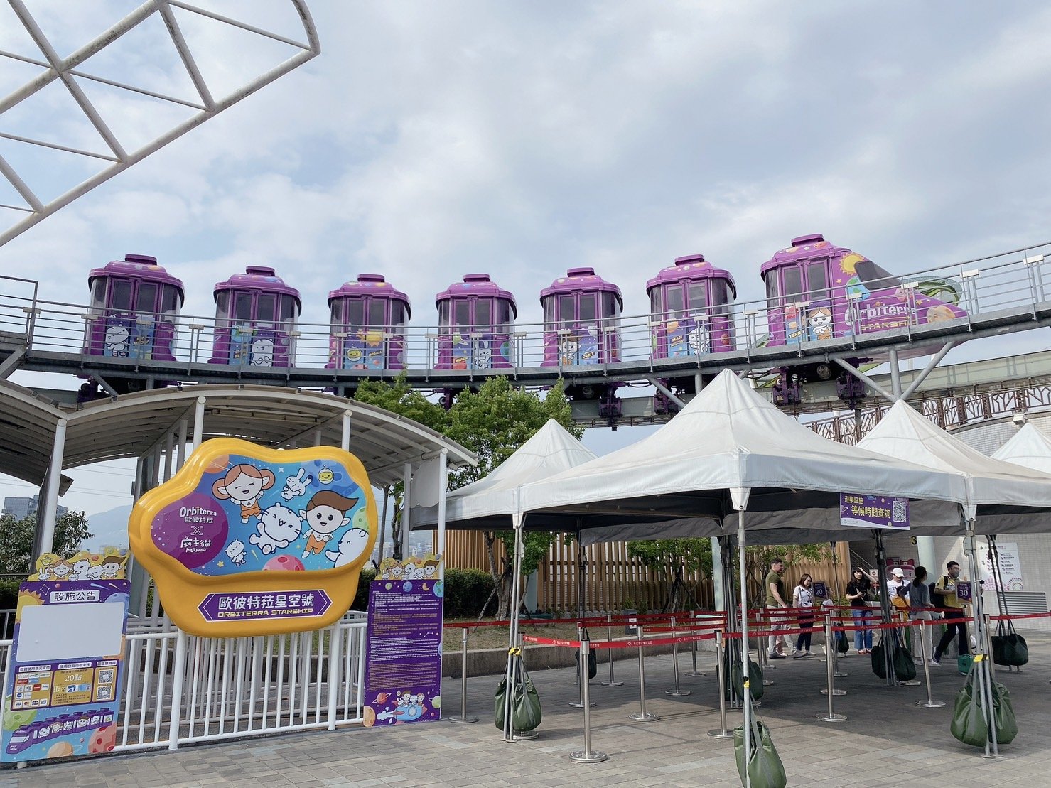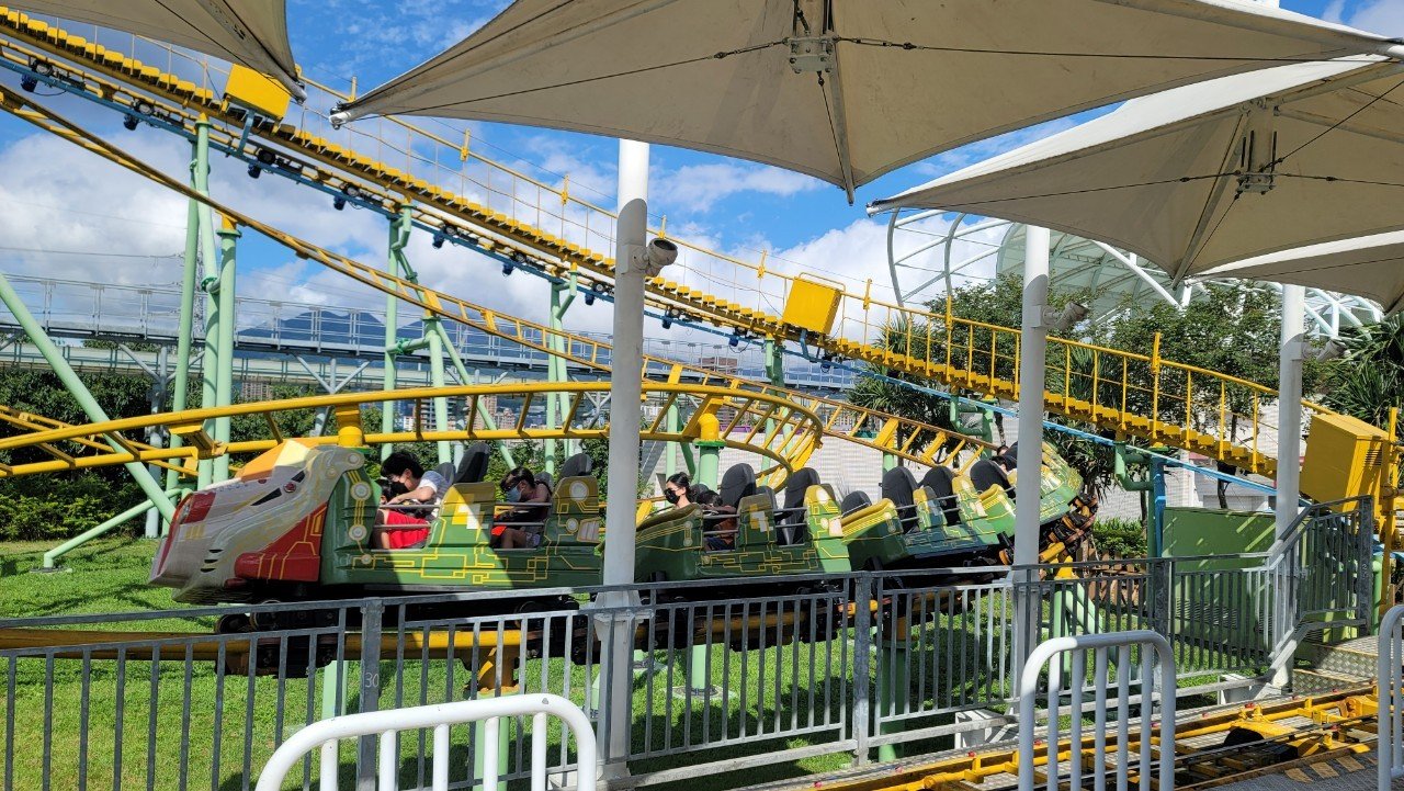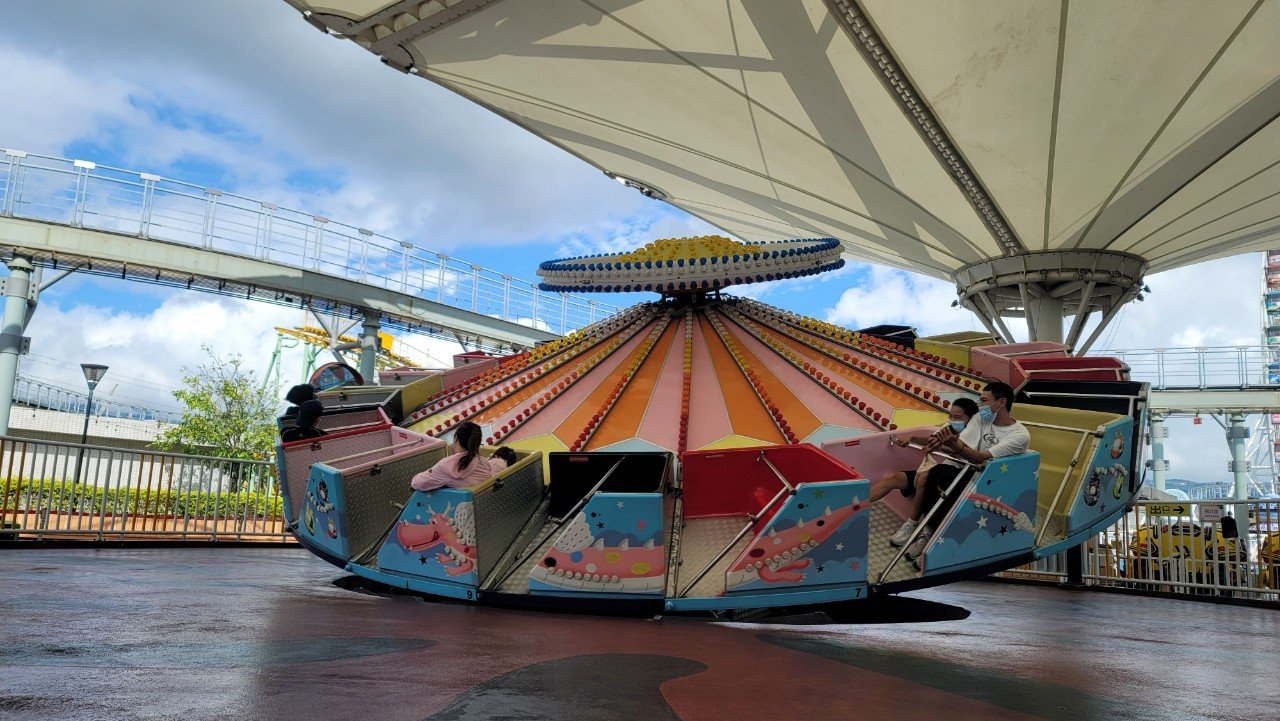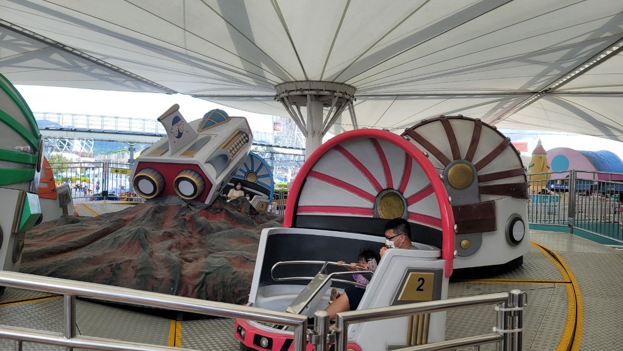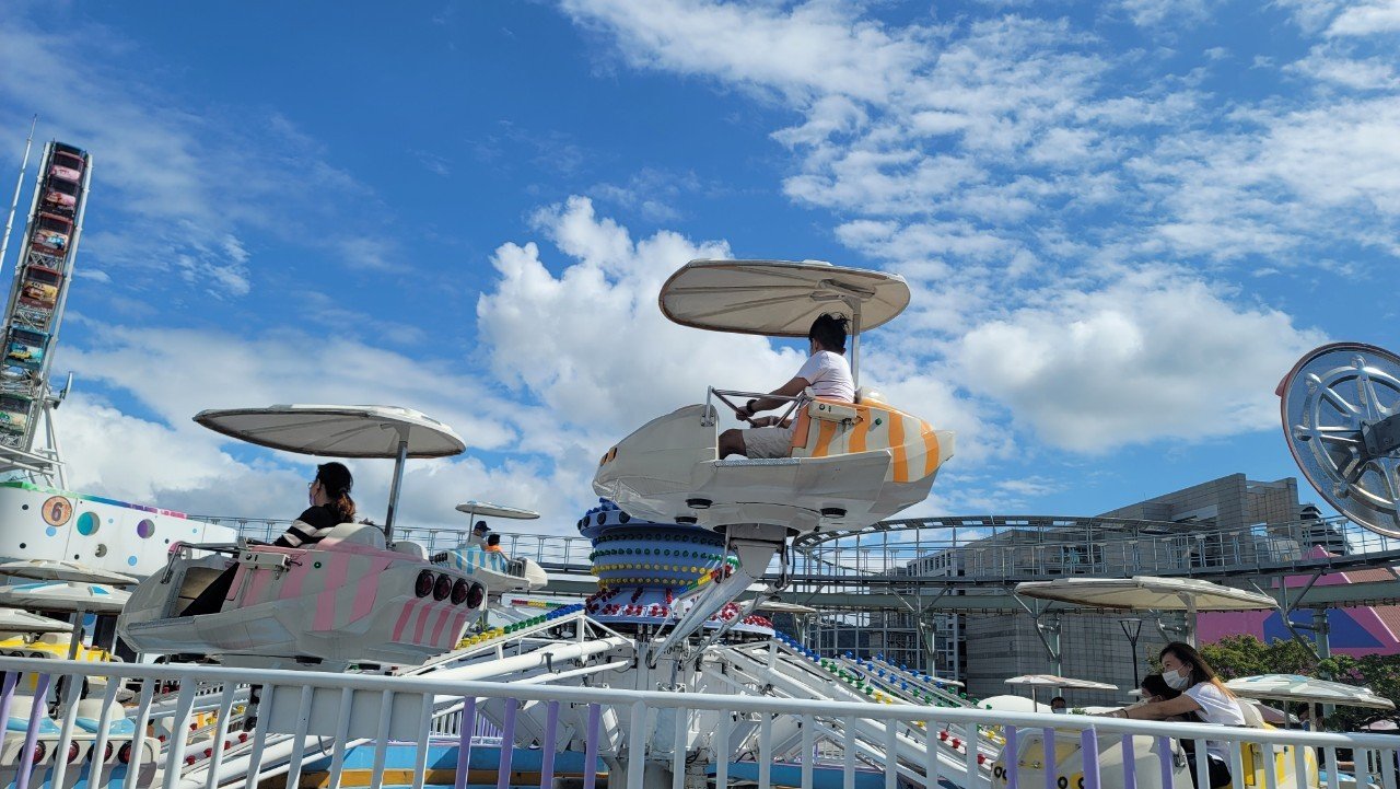 旅途中的重頭戲,是俯瞰下方充滿尖叫與歡笑聲的宇宙迴旋、星空小飛碟及魔法星際飛車等設施,一同感受搭乘遊客的歡樂之餘,也把待會想要遊玩的設施,都先體驗了一番。