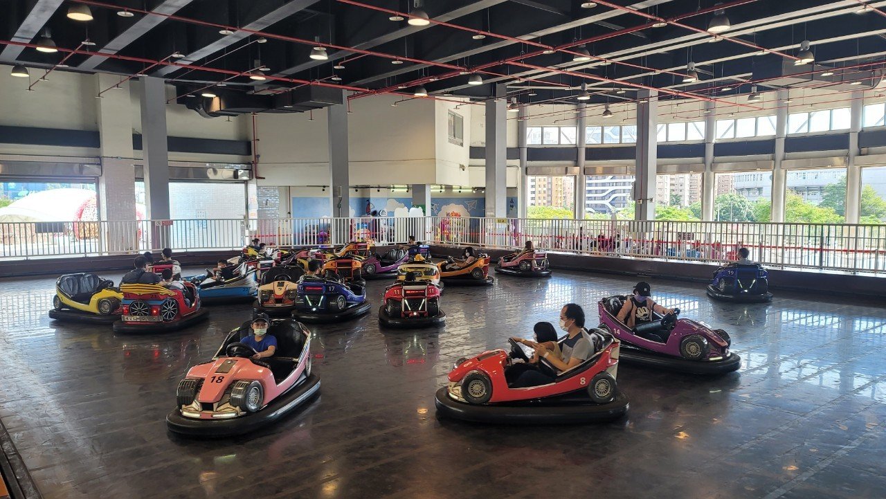 以繽紛彩繪的跑車為主題的「幸福碰碰車」是全園操作自主性最高的遊樂設施,共有24台碰碰車提供親子共同遊樂。遊玩時操作者需乘坐於車身左邊座位處,踩踏油門前進,依靠方向盤控制車身方向,若需要後退則可將方向盤轉到底,車身便會依照方向盤打底方向反向後退。在不同顏色的酷炫敞篷跑車中,有著特殊造型的4輛新型碰碰車速度最快:分別是紅色蒸汽火車、藍色復古老爺車、白色低底盤賽車、橘色亮片賽車,歡迎在遊玩時找尋它們奔馳的身影喔!