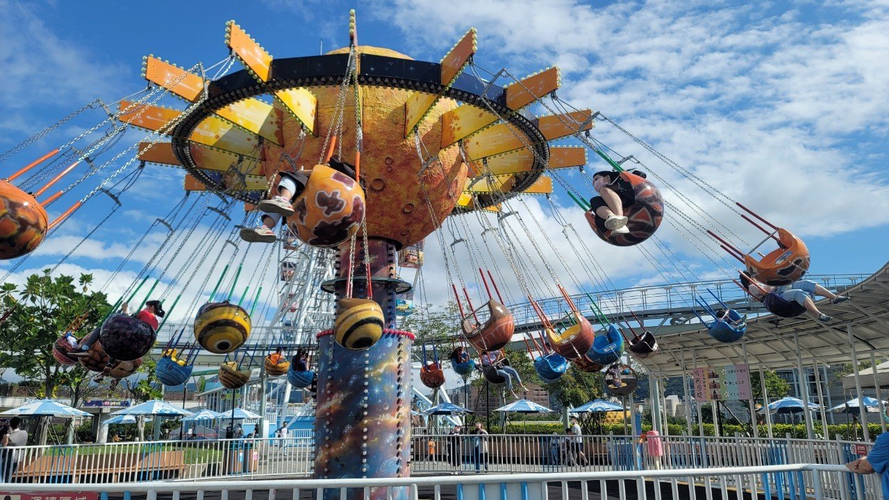 緊接著,迎入目光的是,樂園中最引人注目的摩天輪,你可以和前後搭乘的乘客揮手招呼,還可以趁著空檔,欣賞鄰近著名的臺灣國立科學教育博物館及臺北市立天文館奇趣之造型。