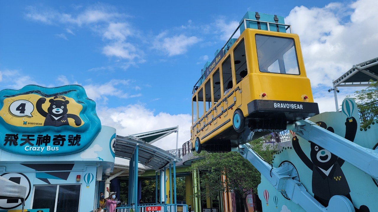 「飛天神奇號」是適合家長與孩子共同乘坐的遊樂巴士,搭配台北市吉祥物「熊讚」聯名設計,以「School Bus熊讚飛行校車」為主題,車身漆滿黃黑配色,車頂擺放印有「Crazy Bus」字眼和熊讚校車司機頭貼的標語。運作時機身會迴旋舉昇巴士,讓遊客體驗騰空感,並在舉昇至最高點時會出現熊讚高舉雙臂,造型生動趣味。