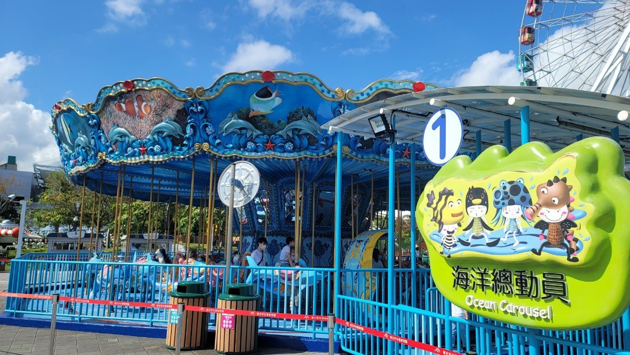 本項設施運轉時於平面360度平緩旋轉,座騎(如:海豚、海馬等海洋生物)將上下擺盪運動,必須能夠自行坐穩。無法緊握立桿,或平衡感不佳者,建議由親友陪伴或協助搭乘;孕婦須可穩定乘坐於平面座椅上,請自行評估是否適合搭乘。