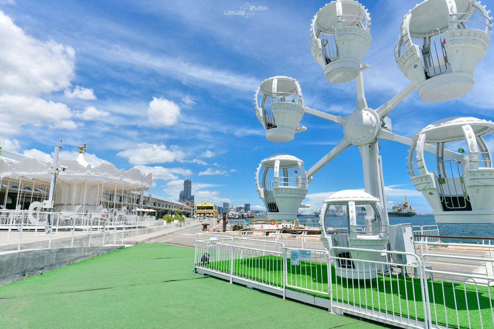 文創&餐飲品牌進駐,其中純白色旋轉木馬成為熱門高雄IG打卡景點,還可以直接搭船到旗津,推薦你們玩。