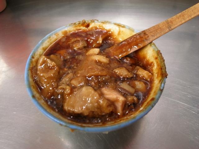 用竹籤沿著古早味陶碗劃開邊緣,可見裡頭有蝦仁、瘦肉、肉燥、香菇、蔥酥和蛋黃,淋上店家特製的醬油膏、大蒜醬,這就是讓人眷戀的幸福好滋味,也是台南遊子外出打拼最想念的家鄉味呢~