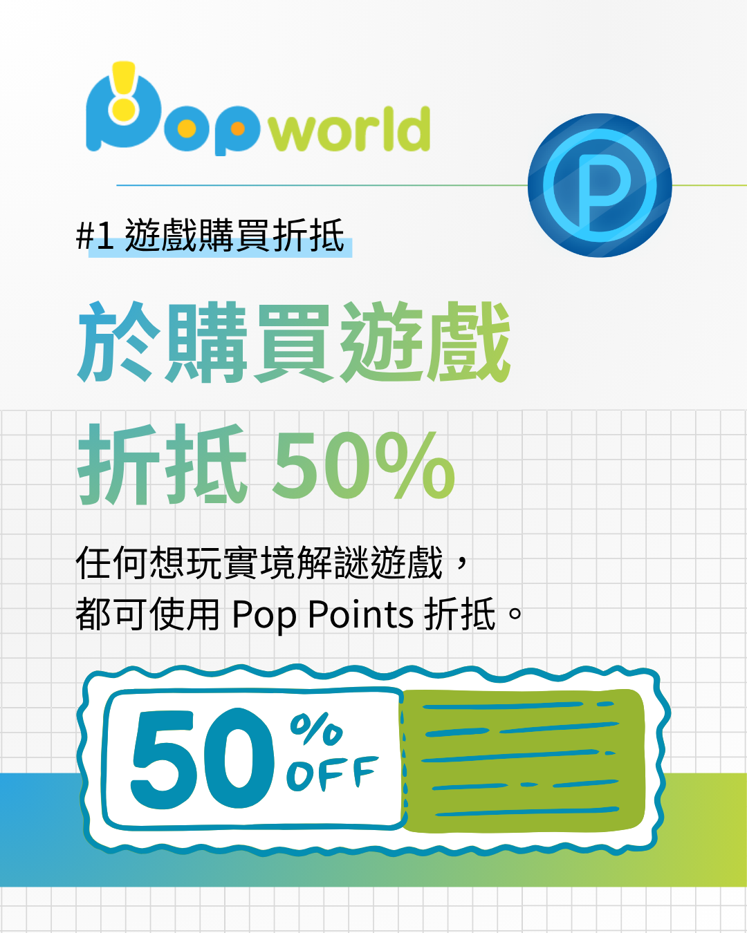 • 購買遊戲時:折抵 50% 的金額