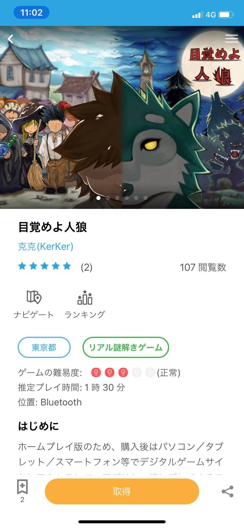 「取得」を押してゲームをダウンロード。ダウンロード完了後にプレイ開始!